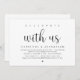 Tarjeta de invitación de boda con tema de guión negro moderno (celebra con nosotros). Es perfecto para su recepción de boda con huida / fiesta de celebración post-boda. Agregue sus detalles en fuente / letra negra coincidente.