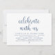Moderna tarjeta de invitación de boda con tema de escritura en azul marino (celebra con nosotros). Es perfecta para su recepción de boda / fiesta de celebración después de la boda. Agregue sus detalles en fuente / letra negra coincidente.