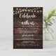 Hermosa tarjeta de anuncio de boda rústica moderna, con luces de cuerda de madera oscura, tema cottage de granja, (Celebra con nosotros). Esto es perfecto para la recepción de su boda y la fiesta de celebración después de la boda. Agregue sus detalles en letra / letra coincidente.