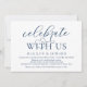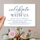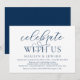 Moderna tarjeta de invitación de cena o fiesta de bodas con caligrafía simple romántica minimalista en azul marino (Celebra con nosotros). Es perfecta para el anuncio de tu boda y celebración después de tu mejor día. Agrega tus detalles en fuente / letra negra a juego.
