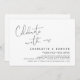 Esta es la tarjeta de invitación de la fiesta de boda íntima, con diseño de letra negra minimalista / minimalismo (Celebra con nosotros).