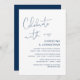 Esta es la tarjeta de invitación de la fiesta de boda fugaz, con diseño de letra Navy Blue minimalista / minimalista con clase (Celebra con nosotros)