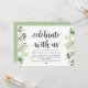 Moderna Tarjeta de Invitación temática de Verdor Rústico con Eucalipto, y Letra Negra (con título de tarjeta: Celebra con nosotros). Es perfecta para la celebración de su cena de ensayo de boda, antes de su mejor día. Agregue sus detalles en letra negra coincidente.