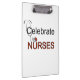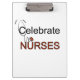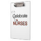 Un estetoscopio y diseño de texto rojo y negro que dice Celebrar a las enfermeras en un portapapeles ¡genial para las enfermeras!
