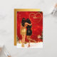 Dos amigas con vestidos glamurosos, una de oro y la otra de negro, comparten un cálido abrazo en un entorno navideño festivo. La escena está adornada con luces centelleantes, un árbol de Navidad bellamente decorado y un mensaje de cumpleaños conmovedor para una mejor amiga.