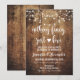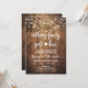 invitación a la fiesta de boda fuga con fondo de madera rústica y luces de cuerda. Nada lujoso, solo amor invitación de recepción de boda rústica.