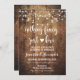 Invitación de boda secreta con fondo de madera rústica y luces de cuerda. Nada elegante, solo amor invitación de recepción de boda rústica.