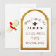 Celebre el éxito académico con estilo con este diseño personalizado de fiesta de celebración de graduación, creado tanto para graduados de escuela como de universidad. Con una ilustración clásica de gorra y diploma, este diseño destaca el momento del logro y ofrece opciones personalizables para agregar el nombre del graduado, año de graduación o detalles de la institución educativa.