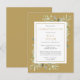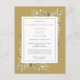 Una elegante celebración personalizada de la recordación de la vida postal de la invitación al funeral con fondo de oro que incluye follaje de color de agua botánica sobre un fondo dorado. Diseñado por Thisisnotme©