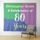 Celebre un cumpleaños con un tapiz personalizado de fondo colgante que muestra el nombre del destinatario y el número de años. Fondo para una fiesta para una persona de 80 años.