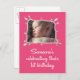 Una bonita invitación para recibir fotos de primer cumpleaños con un marco ilustrado a mano, esta adorable invitación se destacará en la pila de correo. Esta invitación se puede personalizar con la información de fotos y fiestas de su hijo.