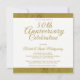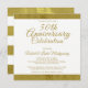 Celebración del 50 Aniversario Tarjeta de Invitación Dorada. Invite a familiares y amigos a una celebración especial del 50 aniversario de bodas con esta tarjeta dorada y blanca diseñada con texto y rayas de color dorado. El texto incluye: Celebración del 50 Aniversario de Boda, Nombres de la Pareja, Fecha, Hora y Ubicación, su RSVP y detalles del anfitrión. Para personalizar, simplemente inserte su texto en nuestra plantilla fácil, reemplazando la muestra. Nota: Esta invitación está disponible para imprimir o descargar.