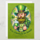 🍀 Una colorida tarjeta del Día de San Patricio con un duende alegre sosteniendo una cerveza verde. Rodeado de tréboles y puntos dorados de luz, el motivo irradia alegría festiva y joie de vivre irlandés. Perfecto para felicitaciones y celebraciones exuberantes.💚✨