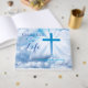 Las nubes blancas iluminadas y una cruz azul brillante crean un registro de invitados significativo para la "Celebración de la Vida" para un ser querido cristiano. Añade el nombre y las fechas del ser querido al pie de la cruz y en la columna del libro. En la parte trasera hay espacio para una foto (y nombres) o una simple espalda azul que coordina con el color de la cruz. Las fuentes seleccionadas contrastan bien. Actualmente se inscribe la frase "Celebración de la vida", pero se puede cambiar fácilmente.