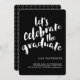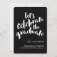 El estilo moderno y moderno invita a los huéspedes a "celebrar al graduado" con un popular tipo de letra cursiva con el aspecto de letras a mano. Mostrado en blanco clásico sobre negro, se puede personalizar fácilmente el color de fondo para que coincida con el esquema o tema (también disponible con texto negro). Una invitación o invitación única y moderna para una fiesta de graduación que es una gran alternativa a las invitaciones fotográficas.