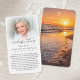 These memorial prayer cards thoughtfully combine the cherished editable Footprints in the Sand poem with a softly faded photo and elegant Celebrating the Life of script. A simple cross offers a quiet expression of faith, while the warm beach sunset reflects comfort, guidance and God’s presence through life’s journey. Designed for a funeral, memorial service or Celebration of Life, these cards provide a meaningful keepsake to honor a life remembered with love and faith. Small and portable size of 3.5x2" (wallet-sized). Personalization makes these cards unique.
