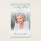 Celebrate a beautiful life with this personalized prayer card designed to reflect love, gratitude and remembrance. The soft sage green tones, elegant script and your cherished photo create a peaceful and uplifting presentation. On the back, an editable comforting prayer offers words of hope and reflection, making this card a meaningful keepsake for a funeral, memorial service or Celebration of Life. Thoughtfully designed to help family and friends honor a life well lived, and its small and portable size of 3.5x2" (wallet-sized) provides a lasting way to remember someone special.