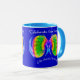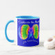 " Celebre la belleza texto del espectro autístico" con una mariposa abstracta del arco iris. Tazas autísticas del orgullo de autistart.com.