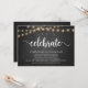 Celebremos, Anuncio de Boda y Huida / Tarjeta de Invitación, en pizarra de granja rústica, diseño de luces de cuerda. Esto es perfecto para la recepción de su boda y la fiesta de celebración después de la boda. Agregue sus detalles en la fuente / letra coincidente.