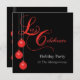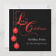 Elegantes adornos de pelota de navidades cubiertos de encaje rojo con arcos rojos y trineo de plata en un fondo negro, esta invitación única para la celebración de personalizado de vacaciones. El texto Fiesta en la parte frontal y posterior puede personalizarse en la plantilla proporcionada. El bello motivo de encaje vintage de estrellas y flores entrelazadas en los adornos navideños recuerda al antiguo arte de la confección de encajes. Podrá disfrutar de muchos de los otros productos de fiestas disponibles en el Anura Design Studio en el sitio Zazzle con este encantador y vintage diseño de adorno de Navidad.©AnuraDesignStudio Todos los derechos reservados