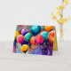 Esta tarjeta de ocasión contiene un ramo de varios globos coloridos y una caida de confetti. El verdadero texto de muestra de Relieve metalizado que aparece en la parte delantera dice: "¡Celebren! Es tu cumpleaños". El texto que aparece en el interior dice: "Te deseo felicidad hoy y siempre. Feliz cumpleaños". Todo el texto puede cambiarse o eliminarse haciendo clic en "Personalizar esta plantilla". Además de los cumpleaños, esta tarjeta de diversión también es perfecta para muchas otras ocasiones. Sólo cambia el texto destacado y tendrás la tarjeta perfecta para graduación, aniversarios, jubilación, compromisos, un recién nacido, logros especiales y más.