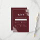 Invite guests to respond in style with these celestial burgundy RSVP cards, designed to match your wedding suite. Soft silver, cloud‑like textures and scattered starlight frame a rich burgundy background, while the center remains clean and open for your response details and meal selections. The romantic night‑sky aesthetic adds a touch of sparkle to your mailing, making even this practical piece feel special and thoughtfully coordinated.
