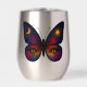 This striking butterfly illustration blends celestial symbolism with fierce, mystical energy. Saturated feathered rainbow hues are set against a star filled night sky. A glowing crescent moon rests in one upper wing, balanced by a radiant sun in the other. The lower wings reveal jewel green cat eyes, giving the piece an otherworldly presence. Add cosmic energy to your wine time with this beautiful boho tumbler.