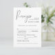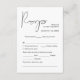 Esta es la hermosa tarjeta de gabinete Modern, Calligraphy, Romantic RSVP (Respond), donde puedes editar, cambiar de color y formatearlo según tus necesidades de diseño, con opciones de comida, asientos reservados, asistencia de número y opción de petición de canciones. Teesha Derrick