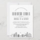 Un ensayo único de invitación a una boda en la hermosa ciudad de Brooklyn, Nueva York. Esta invitación presenta un ilustracion estilizado del paisaje único de la ciudad. A esto le sigue la información de su cena de ensayo en un estilo a juego y abierto. En el reverso de la invitación se aprecia un color gris carbón profundo que complementa el aspecto y la sensación. Además, hay un punto al revés para añadir información sobre RSVP a sus clientes. Todos los elementos individuales de la tarjeta de invitación están desbloqueados, por lo que puede cambiar o agregar cualquier detalle necesario mediante la función de personalización. ¡Diviértete siendo creativo y hazlo tuyo!