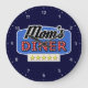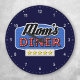 Cada casa necesita el Diner de mamá en la cocina. Este divertido reloj de pared celebra la comida casera de mamá, y hace un gran regalo para cualquier ocasión. Se muestra con un fondo azul oscuro. Se puede personalizar fácilmente para que se adapte a la decoración de la cocina.