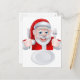 Un ilustracion del dibujo animado del navidad de Papá Noel listo para su comida del navidad que sostiene un cuchillo y una bifurcación con su placa delante de él