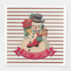 Este diseño presenta un muñeco de nieve vintage sobre un fondo rayado de caramelo. Este animado muñeco de nieve está vestido para las vacaciones con sus muelles verdes, bufanda y mitones. Y para terminar el look... Un sombrero de cabeza adornado con holly. El Sr. Snowman tiene una planta de poinsettia y un Navidad lleno de artículos.