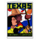 Afiche vintage que representa a dos méxico-estadounidenses celebrando el centenario del gran estado de Texas.