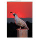 Cuando una nidada de las codornices está forrajeando encaraman una a menudo en un alto lugar que vigila para el peligro. Esta codorniz hacía deber del centinela mientras que la nidada forrajeó cerca. Las codornices y la puesta del sol fotografiaron por separado en el condado de Siskiyou, sellos a juego del CA disponibles en este sitio.