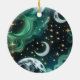 ¡Eleva tu decoración navideña con este lujoso Adorno Redondo de Fases Lunares Celestiales Verde Esmeralda! Con un patrón continuo de fases lunares brillantes, estrellas brillantes y motivos celestiales místicos sobre un fondo verde esmeralda rico. Perfecto para amantes de la astrología, árboles boho chic o como regalo mágico. Impresión de alta calidad para un brillo duradero. ✨🌙