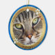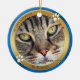 Cerámica Adorno de foto de gato adorable Blue Gold