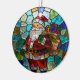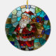 Adorno de Navidad de falso vidrio teñido con Papá Noel llevando una bolsa de regalos. Fondo artístico bonito. Este adorno es un buen añadido a tu colección de adornos y también hace un gran regalo. Ver artículos coordinados en nuestra tienda, Enchanted Finch.