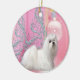 Adorno de Navidad de perro maltés blanco y pasteles rosas.