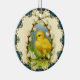 Hermoso adorno de Navidad con un pequeño pollito rodeado de capullos de flores. Agradable para personas que coleccionan adornos de aves.