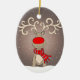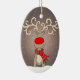 Adorno personalizable de reno alegre en nieve profunda para ayudar a celebrar la Navidad con una sonrisa. El texto en el reverso se puede personalizar con tus propias palabras y nombres. Arte y diseño de Sarah Trett.