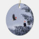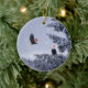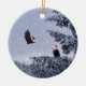 Águilas calvas con sombreros de Papá Noel en un bosque con nieve en un adorno navideño de cerámica. ¡Perfecto para los amantes de la naturaleza!
