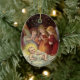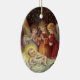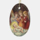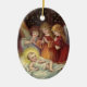 Encantador adorno oval con una imagen vintage de tres ángeles con el bebé Jesús, aparece en la parte delantera. Y detrás de la adoración se lee: "Que la alegría y el amor de los Navidades llenen tu corazón y tu hogar". Un adorno de cerámica bonito para tu árbol o como regalo para celebrar las vacaciones!