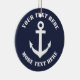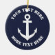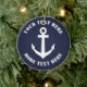 Ornamento Náutico de Navidad con icono de ancla de barco. Personalizado x-mas adorno con el logo del anclaje de barco. Un buen recuerdo de invierno. Decoración de Navidad y decoración de árboles. Incluye una cuerda purpurina dorada para colgarla. Añade tu propia foto o texto en la parte posterior opcionalmente. Color de fondo azul marino del Personalizable. Idea de regalo marítimo para marinero, capitán de barco, primer Navidad de la pareja, recién casados, amigo, compañero de trabajo, colega, jefe, papá, tío, abuelo, etc. ¡Los ancestros pesan!