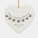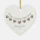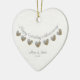 Boda Aniversario mamá de corazón blanco y adorno de papá. El diseño vintage muestra el emparejamiento de corazones perlas, así como texto que puede ser personalizado a los nombres y fecha de aniversario del boda de los padres del comprador. Un regalo hermoso y único que se puede usar para cualquier aniversario. La tarjeta coincidente también está disponible en esta colección.