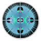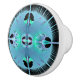 Esta cara de este pomo de gabinete presenta una imagen fractal con ráfagas de azul, turquesa y morado sobre un fondo negro. Es difícil de creer que este gráfico intrincado e inusual se genere con una fórmula matemática pero eso es parte de la fascinación de los fractales. El tallo de la perilla es blanco.