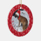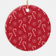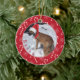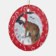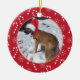 Un adorable ornamento de fotos de perros rojos con un bastón de caramelo y fondo de patrón de copos de nieve. Añade tu nombre de perro si lo deseas. © ArianeC Ilustraciones-Todos los derechos reservados
