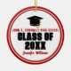 Este moderno adorno de Navidad rojo y blanco personalizado de la Clase de 2026 presenta el nombre de tu escuela secundaria o universidad. Personaliza con el nombre del estudiante graduado debajo del elegante texto y la gorra de graduado negra para un regalo de graduación personalizado genial.