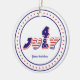 El 4 de julio adorno personalizado de diseño de texto azul rojo.