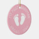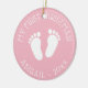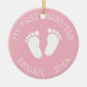 El primer árbol de Navidad del bebé adorable de huellas. Añade tu propia imagen de foto en la parte posterior opcionalmente. Diseño de pequeños pasos con elegante plantilla de tipografía para nombre y fecha. Manejo divertido para la primera Navidad del recién nacido. Color de fondo personalizar a rosa ondulado o azul para chica o niño recién nacido. Felices fiestas! Cadena purpurina dorada incluida. Decoración de navidad personalizado para nueva mamá y papi / padres.
