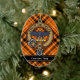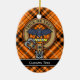 Insignia escudo de Halloween con bate volador rodeado de correa y hebilla sobre fondo tartán. Texto personalizado en ambos lados.